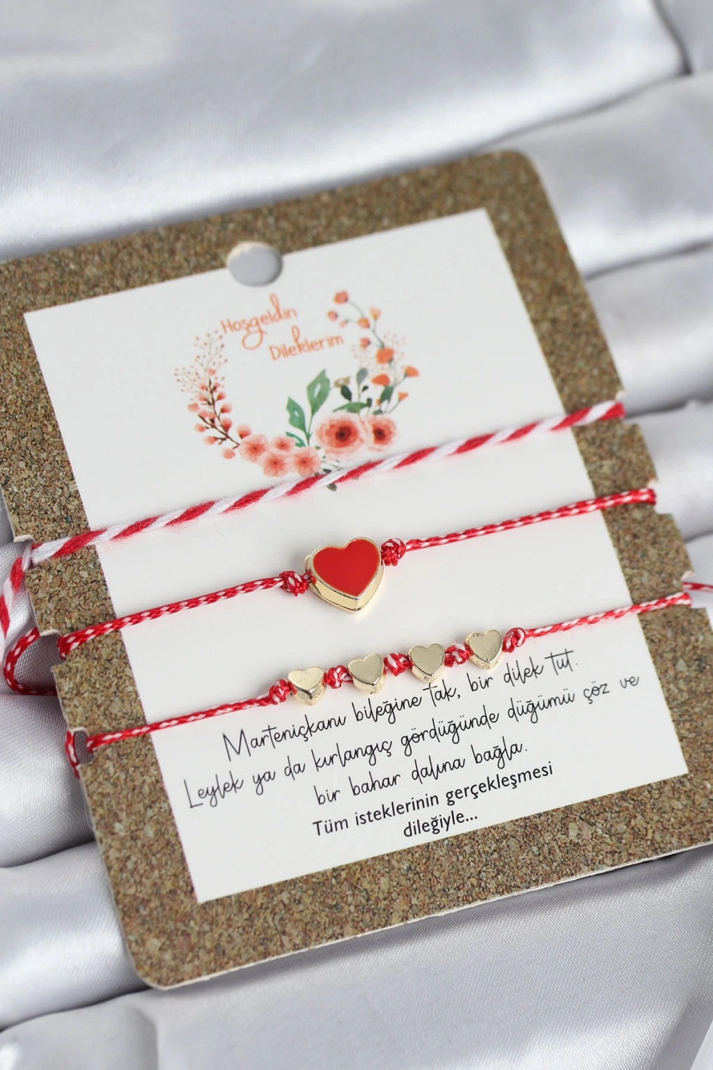 Bileklikler asansörlü makromedir. Objelerdeki renkler karışık renkte gönderilebilir.Martenicka Hikâyesi ve KökeniMartenicka geleneği, baharın gelişi, doğanın uyanışı ve iyilik–sağlık dilekleri ile ilişkilidir.En yaygın anlatıya göre:Balkan mitolojisinde “Baba Marta” (Mart Ana) adında bir figür bulunur.Baba Marta’nın yüzü neşeli olduğunda hava ısınır,Kızdığında ise yeniden soğur veya kar yağar.İnsanlar Baba Marta’nın yüzünü güldürmek, baharı çağırmak ve kötü ruhları uzak tutmak için kırmızı-beyaz ipten Martenicka takarlar.