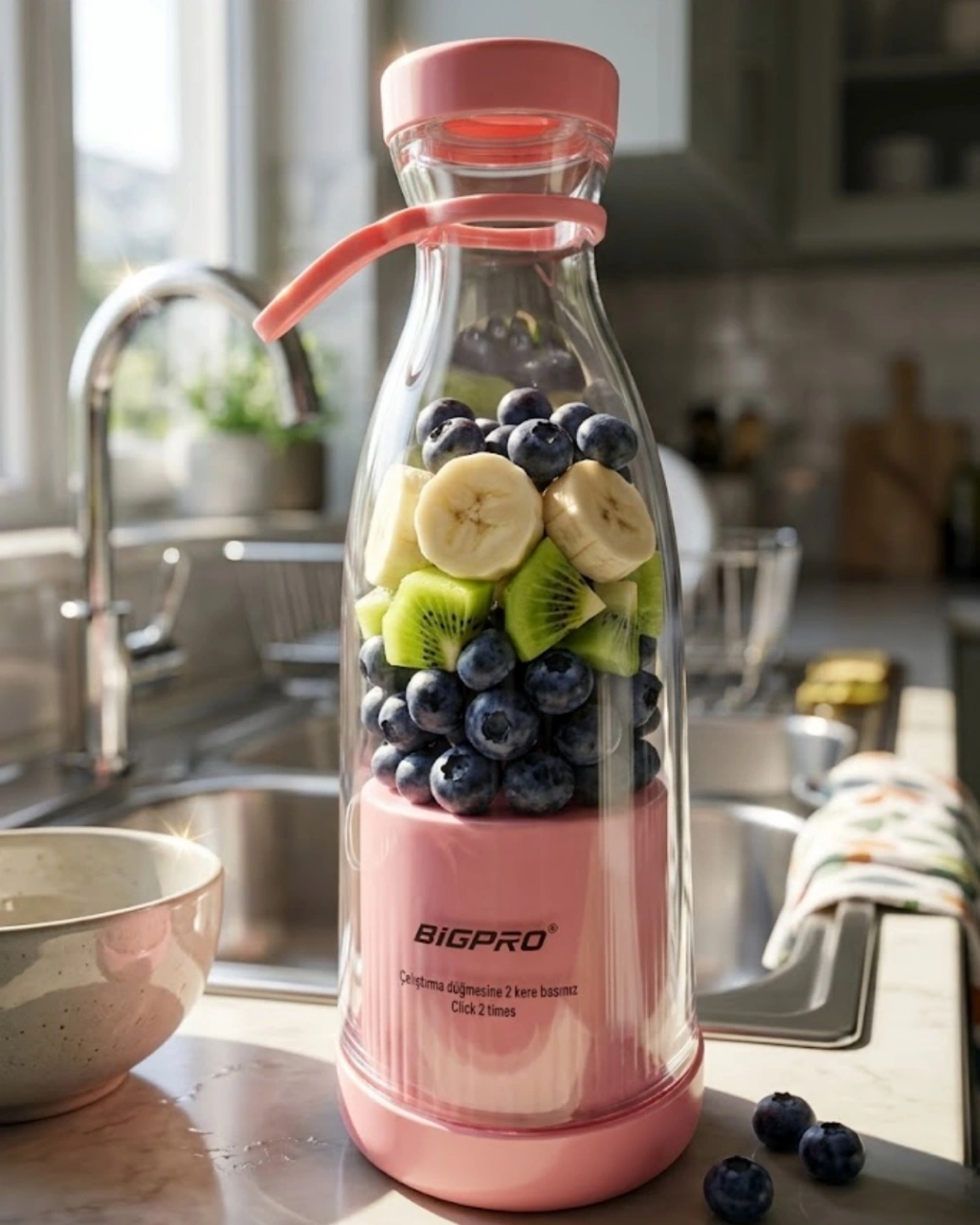 Şarjlı taşınabilir blender, modern yaşamın ihtiyaçlarına uygun olarak geliştirilmiştir. Pratik, hızlı ve kullanışlı yapısı ile dikkat çeker. Günlük hayatta sağlıklı içecekler hazırlamak artık çok daha kolaydır.Kablosuz kullanım özelliği sayesinde istediğiniz her yerde kullanabilirsiniz. USB ile şarj edilebilir olması büyük avantaj sağlar.Kompakt tasarımı sayesinde taşıması kolaydır. Çantanızda rahatlıkla yer kaplamadan taşınabilir.