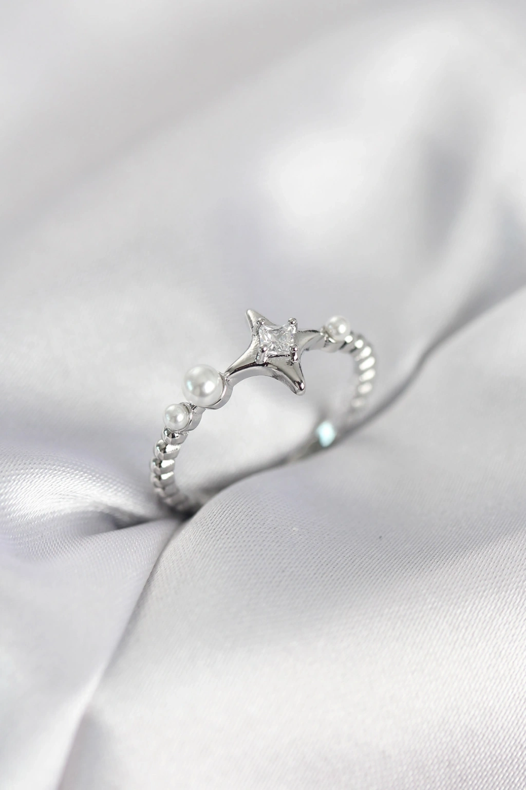 Minimal Kutup Yıldızı Model Zirkon Taşlı Gümüş Renk Kadın Yüzük