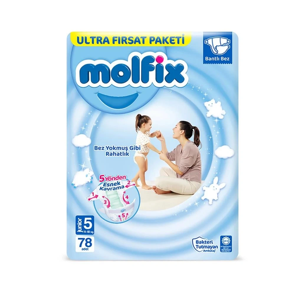 Molfix Bebek Bezi Ultra Fırsat Paketi 5 Beden 11-18 Kg 78 Adet Özellikleri;