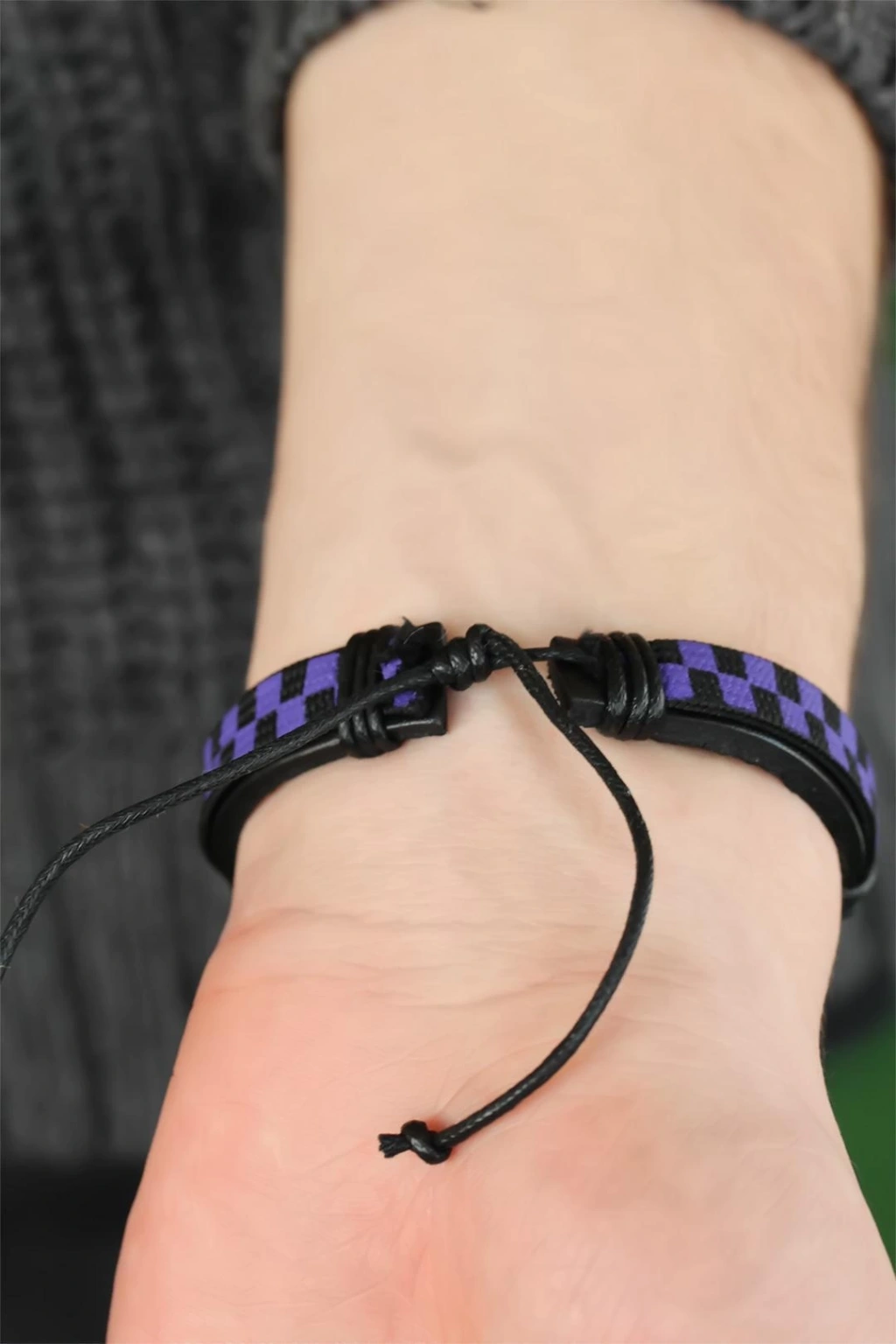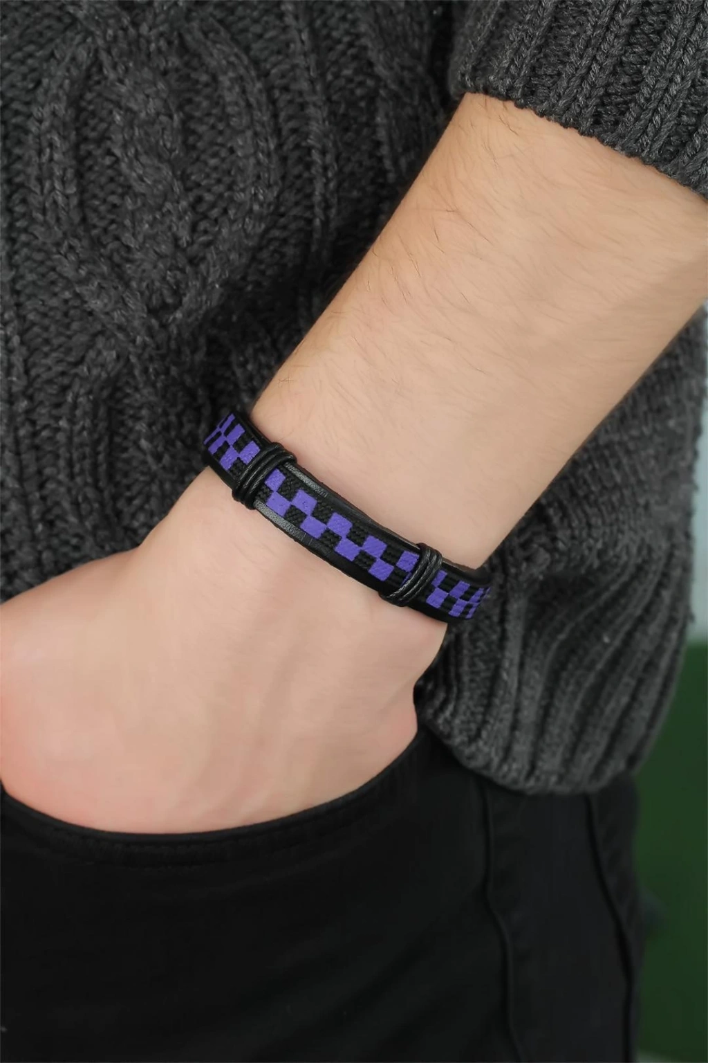 Kendinizi Mor Renk Damalı Deri Erkek Bileklik ile her zaman şık göreceksiniz
