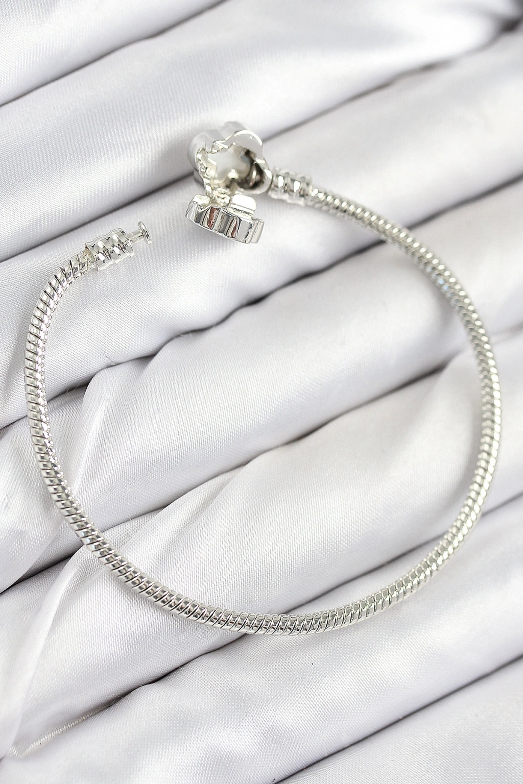 Pirinç Charm Zirkon Taşlı Yonca Model Gümüş Renk Kadın Bileklik