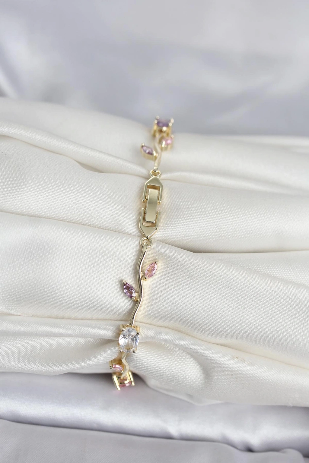Pirinç Gold Renk Çiçek Sarmaşık Model Kadın Bileklik