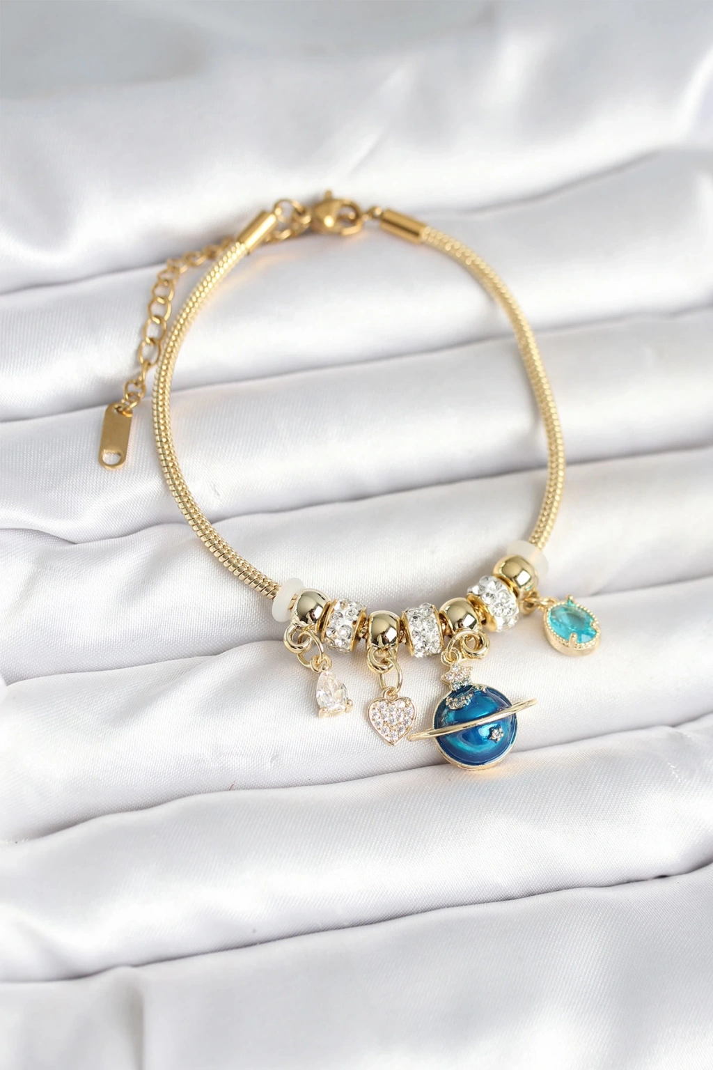 Pirinç Gold Renk Dünya Charmlı Kadın Bileklik