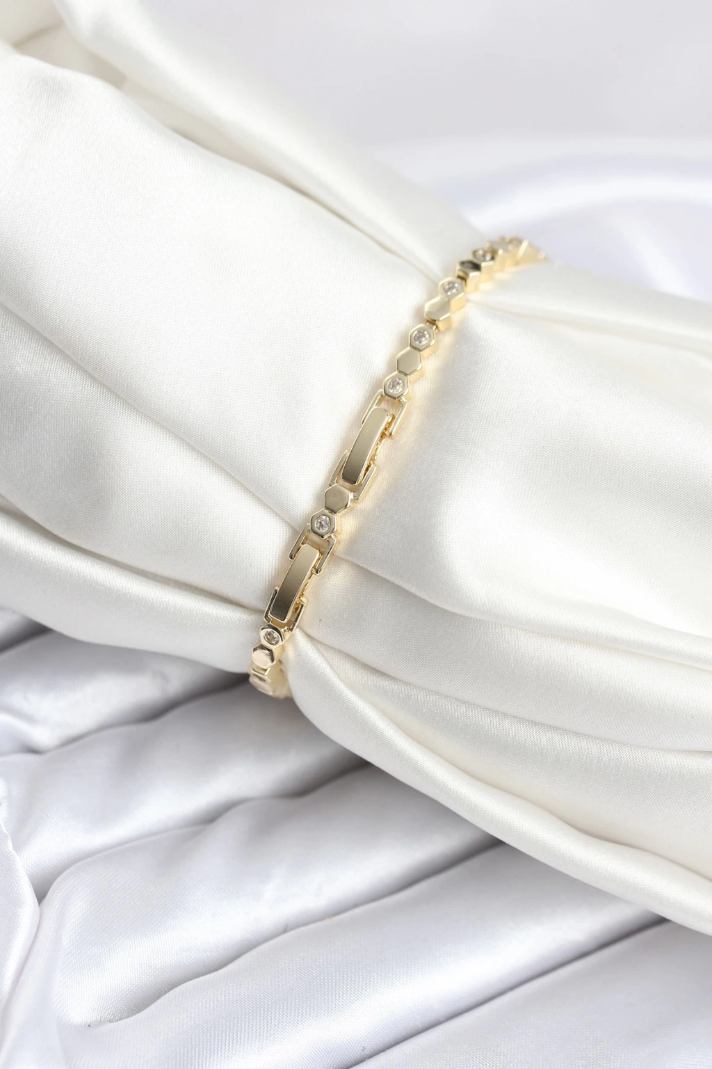 Pirinç Gold Renk İnce Petek Model Kadın Bileklik
