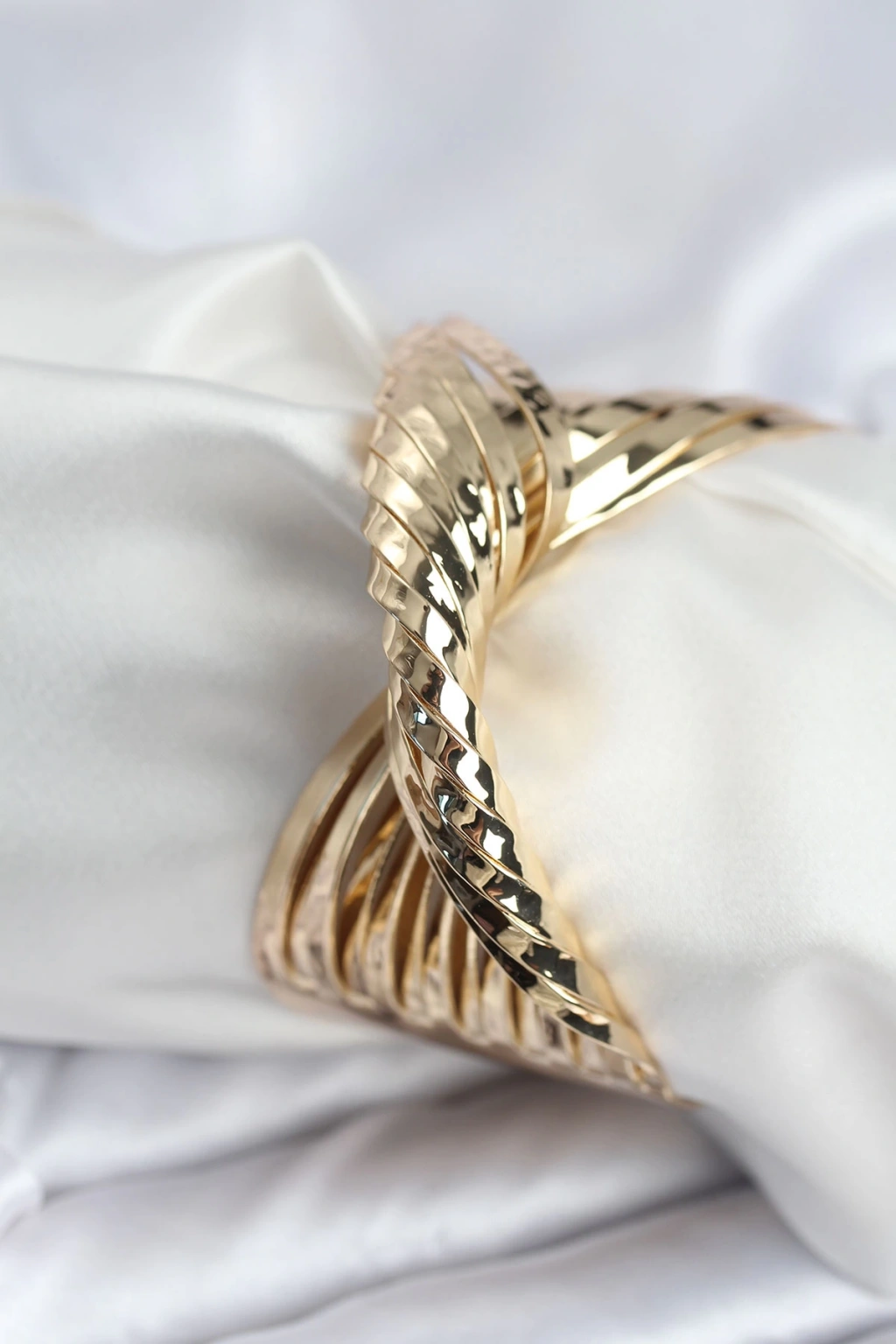 Pirinç Gold Renk Kıvrımlı Yarım Kelepçe Bileklik