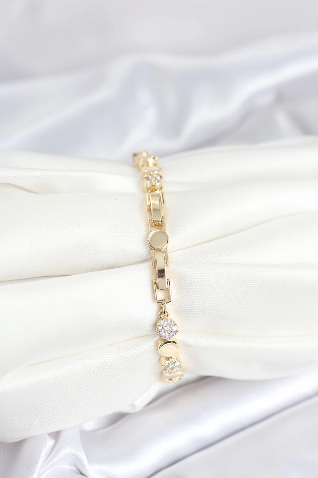 Pirinç Gold Renk Nokta Model Zirkon Taşlı Kadın Bileklik