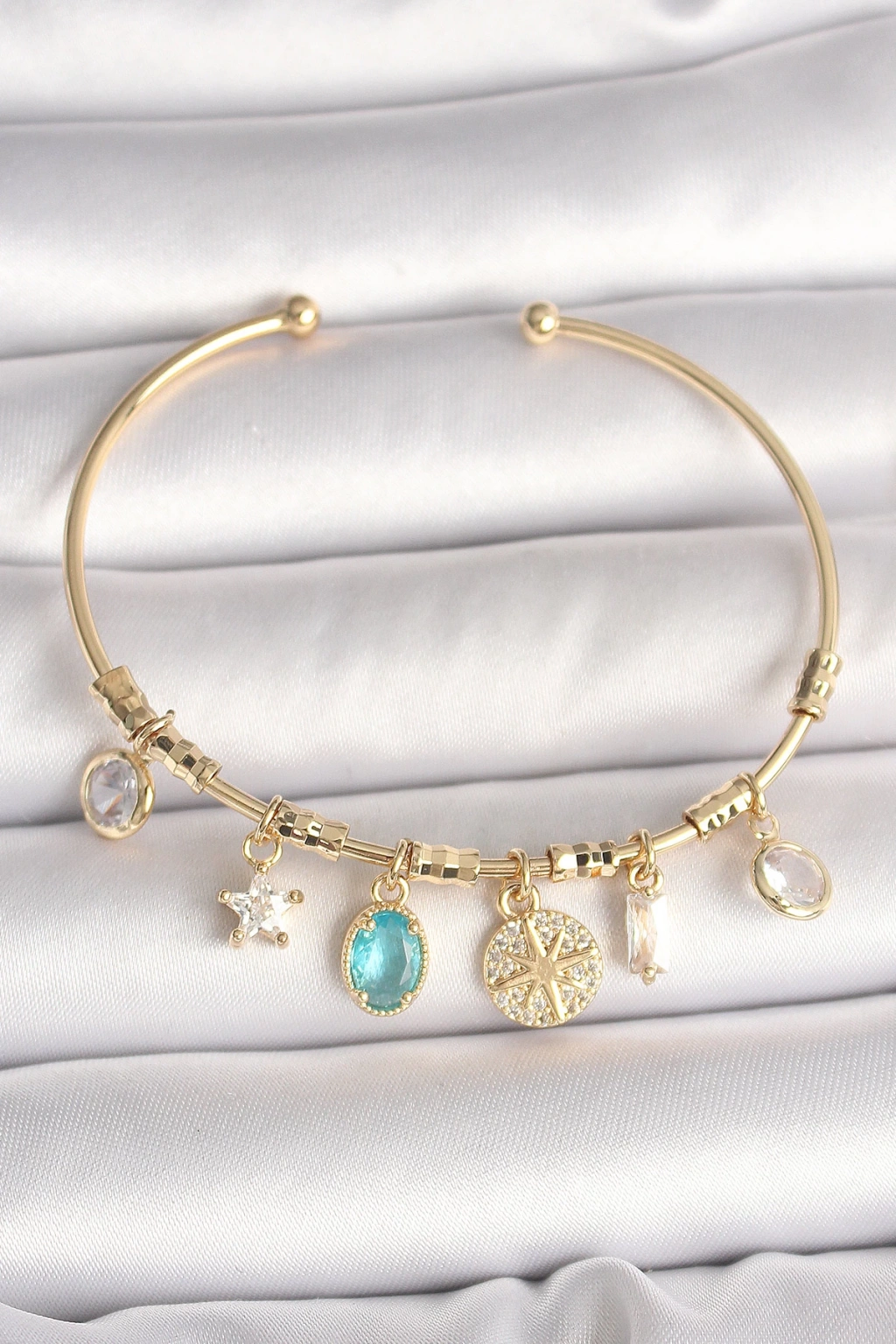 Pirinç Gold Renk Sallantı Zirkon Taş Detaylı Pusula Figür Charm Kadın Bileklik
