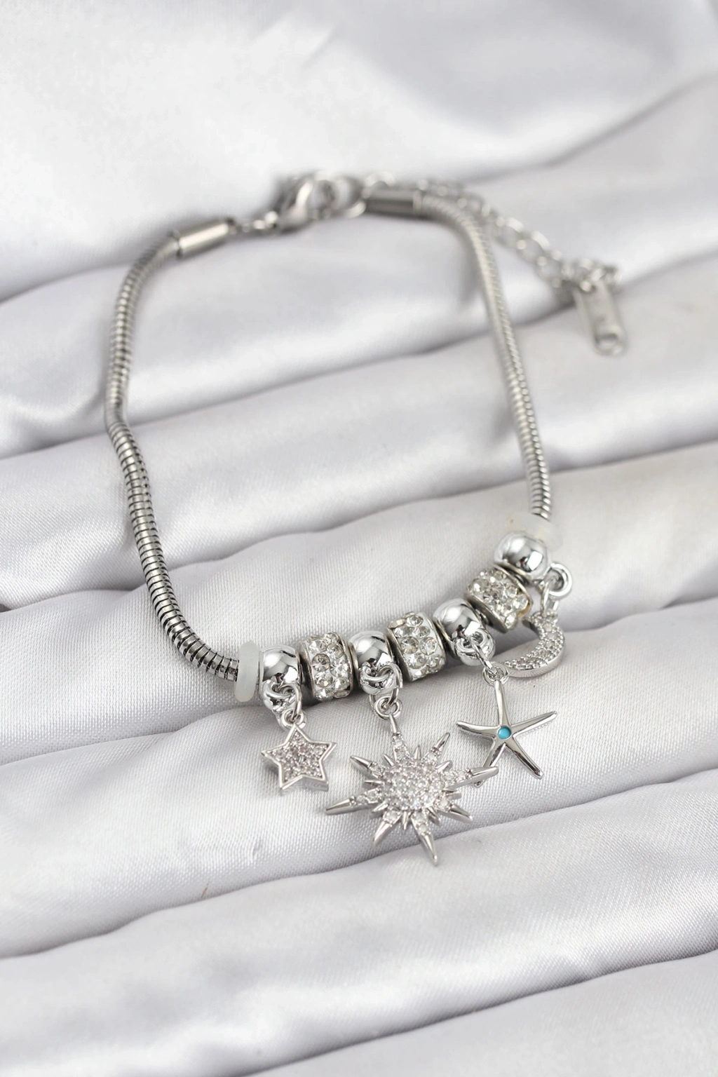 Pirinç Gümüş Renk Güneş Tema Charmlı Kadın Bileklik