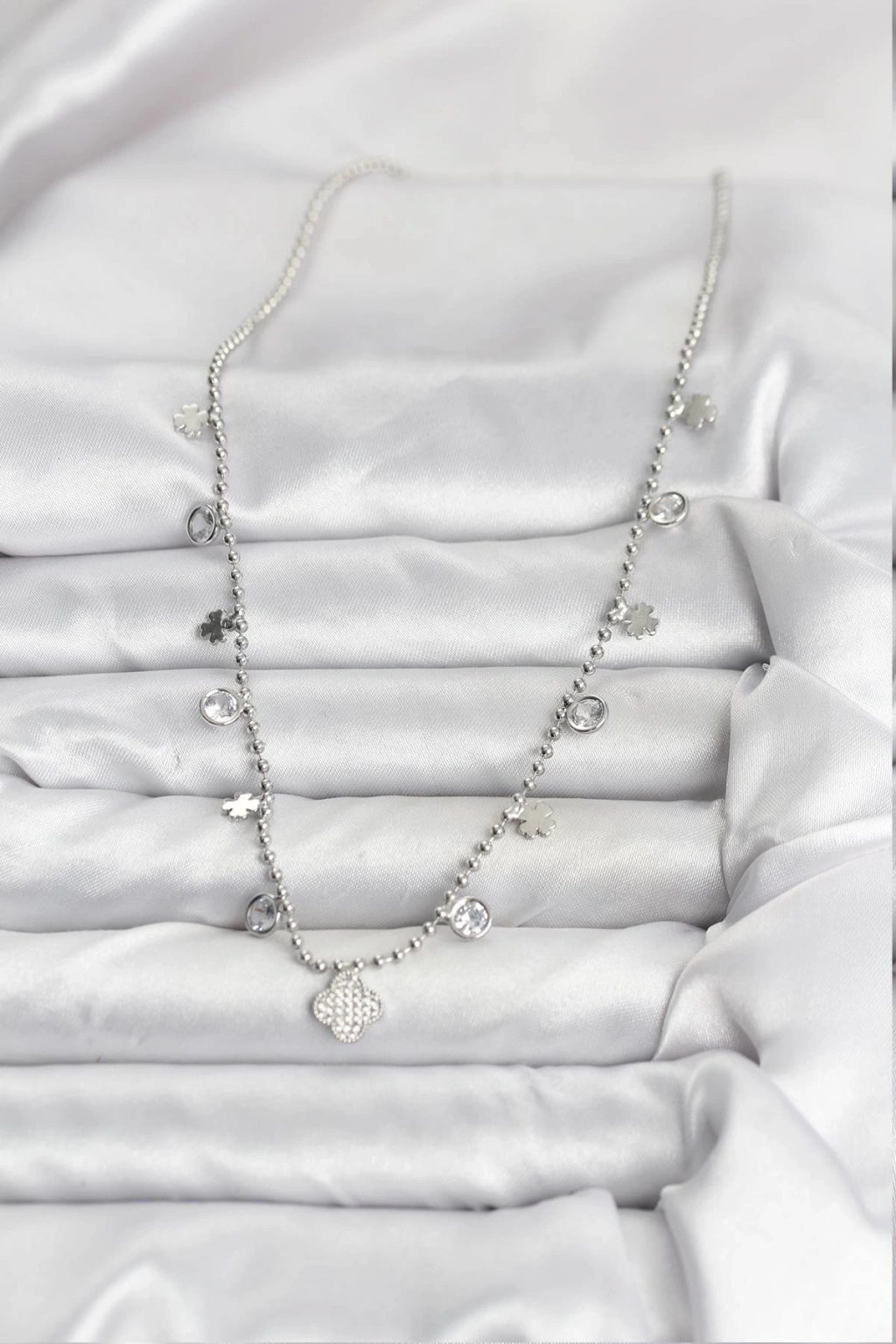 Pirinç Gümüş Renk Yonca Model Kadın Kolye