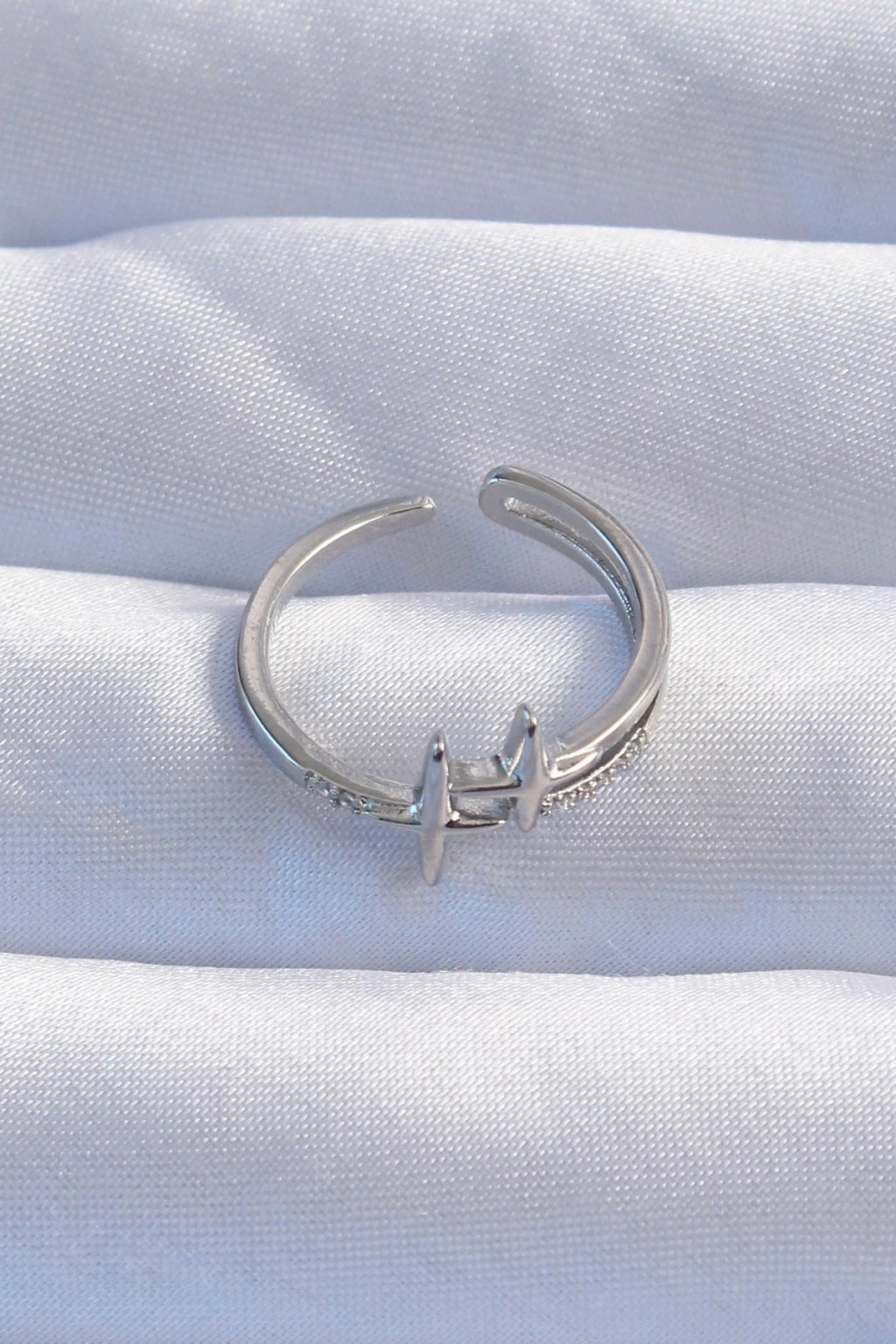 Pirinç Gümüş Renk Zirkon Taşlı 2li Görünüm Ayarlanabilir Yıldız Model Yüzük