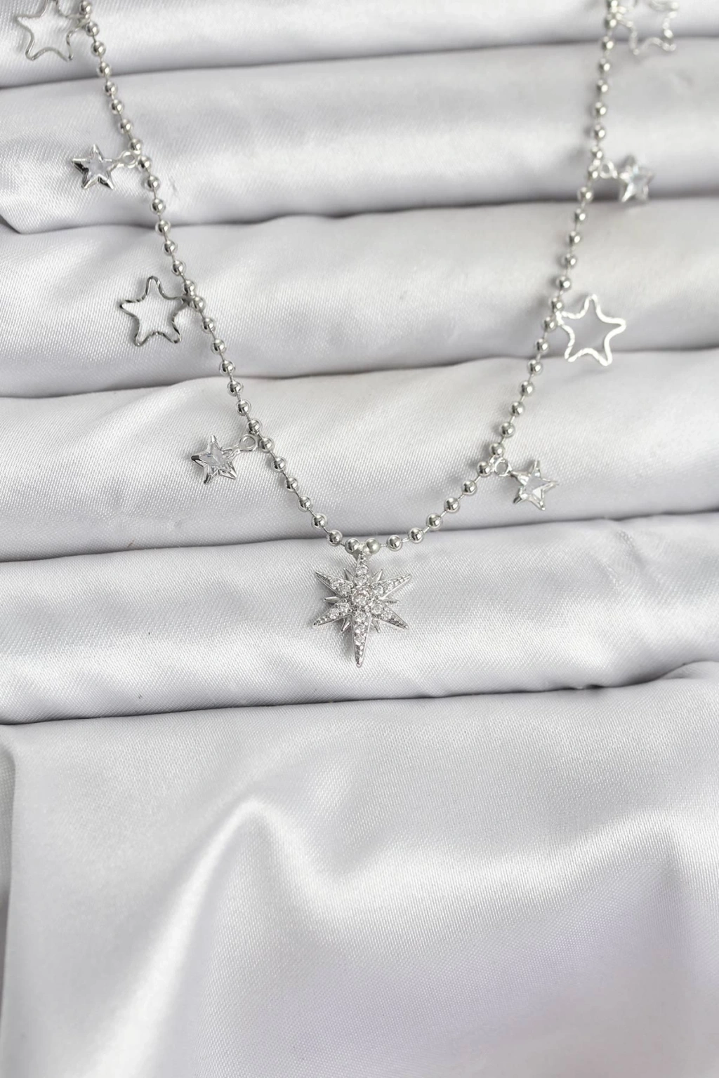 Pirinç Gümüş Renk Zirkon Taşlı Kutup Yıldızı Model Kadın Kolye