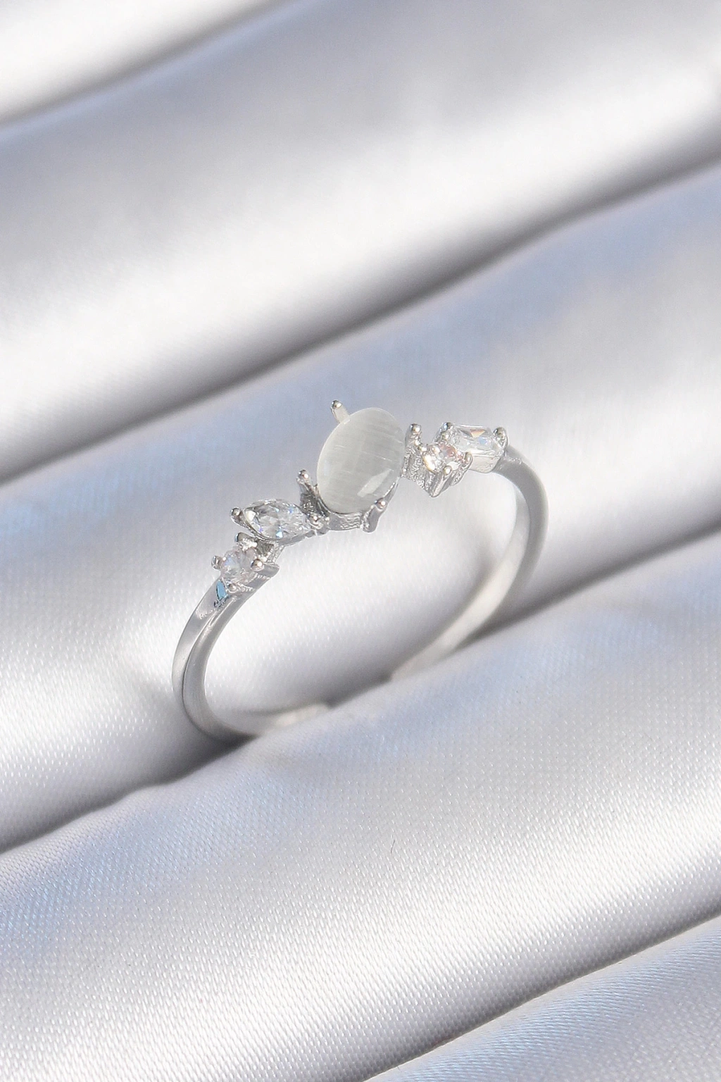 Pirinç Gümüş Renk Zirkon Taşlı Oval Beyaz Mineli Kadın Yüzük