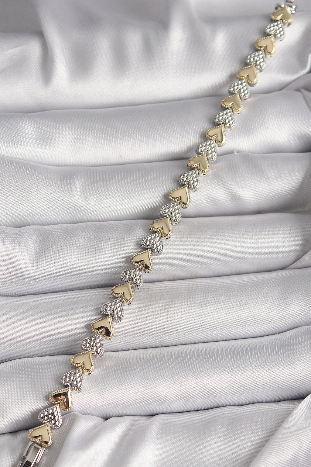 Pirinç Mix Renk Zirkon Taşlı Kalp Model VIP Seri Kadın Bileklik
