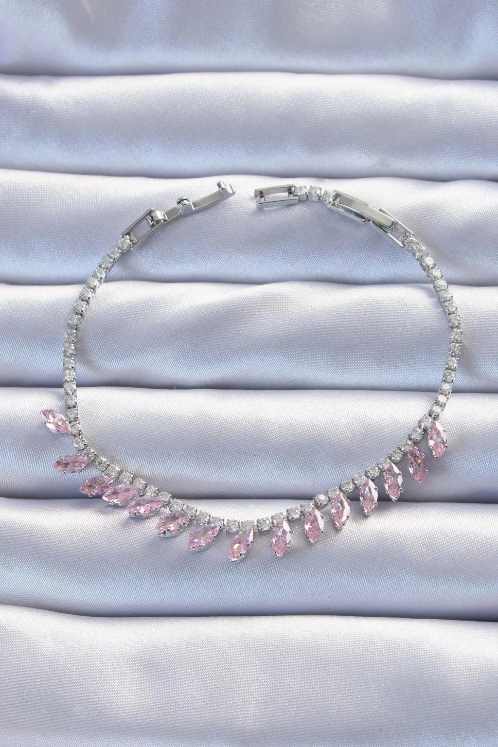 Pirinç Vip Seri Gümüş Renk Pembe Zirkon Taşlı Bileklik