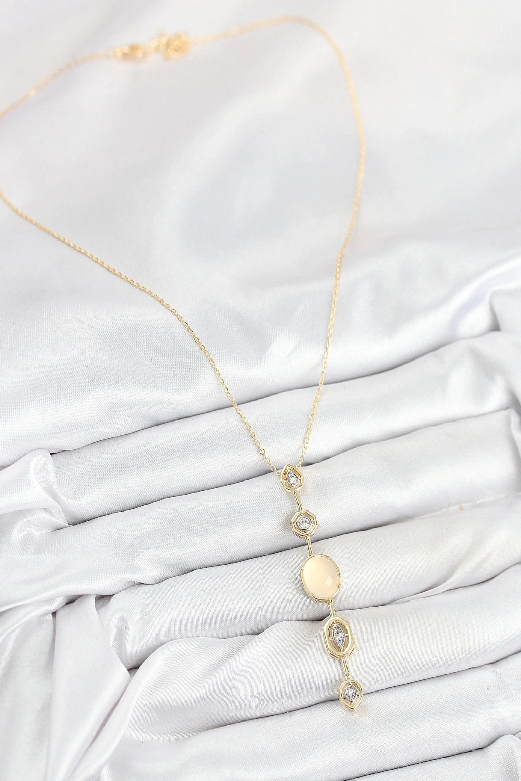 Pirinç Zincir Sarı Gold Renk Zirkon Taşlı Y Kolye