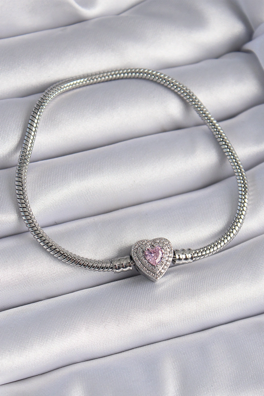 Pirinç Zirkon Taşlı Kalp Figür Charm Model Kadın Bileklik