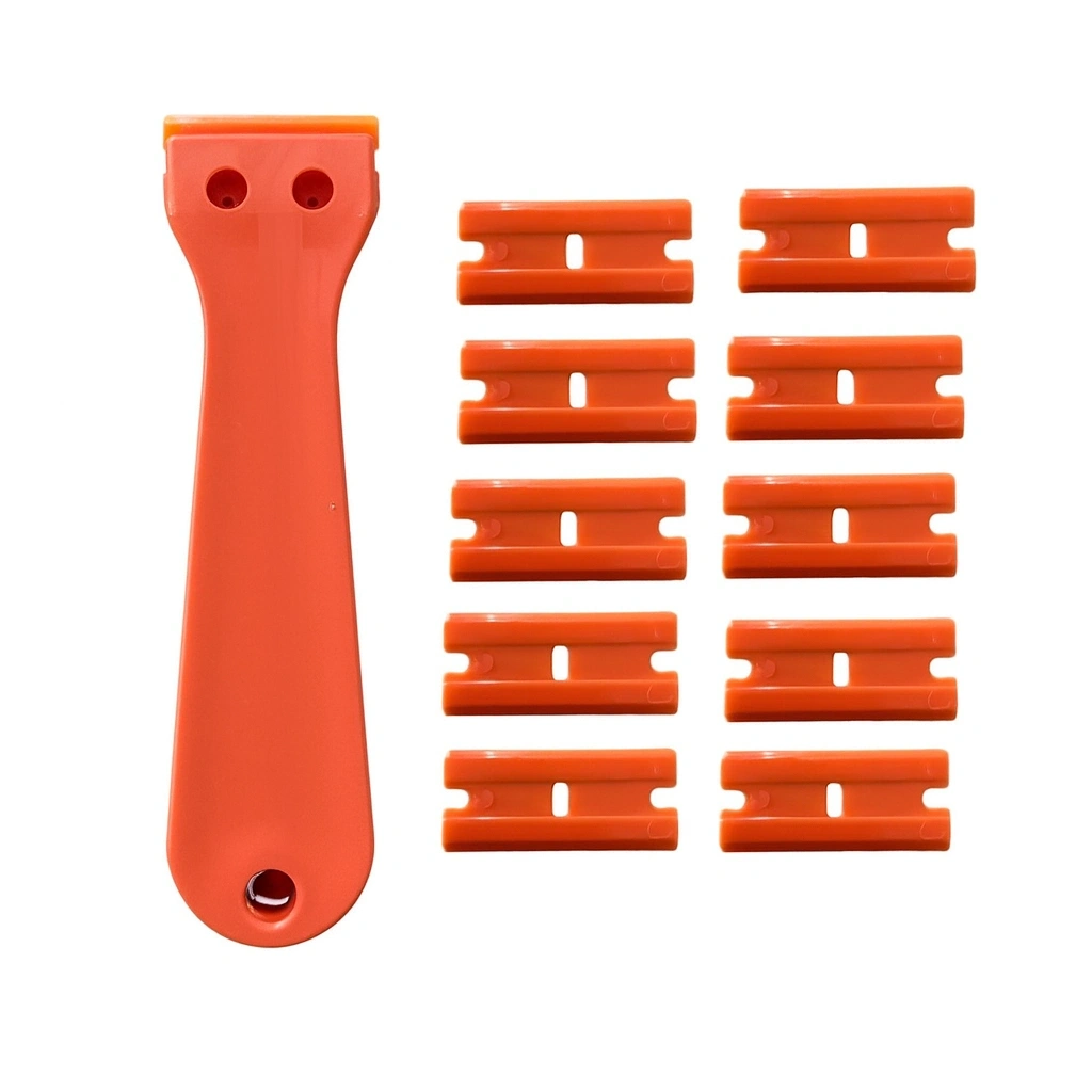 Plastik cam kazıma aparatı, araç camlarında oluşan etiket, film, kir ve yapışkan kalıntılarını yüzeye zarar vermeden temizlemek için tasarlanmıştır.