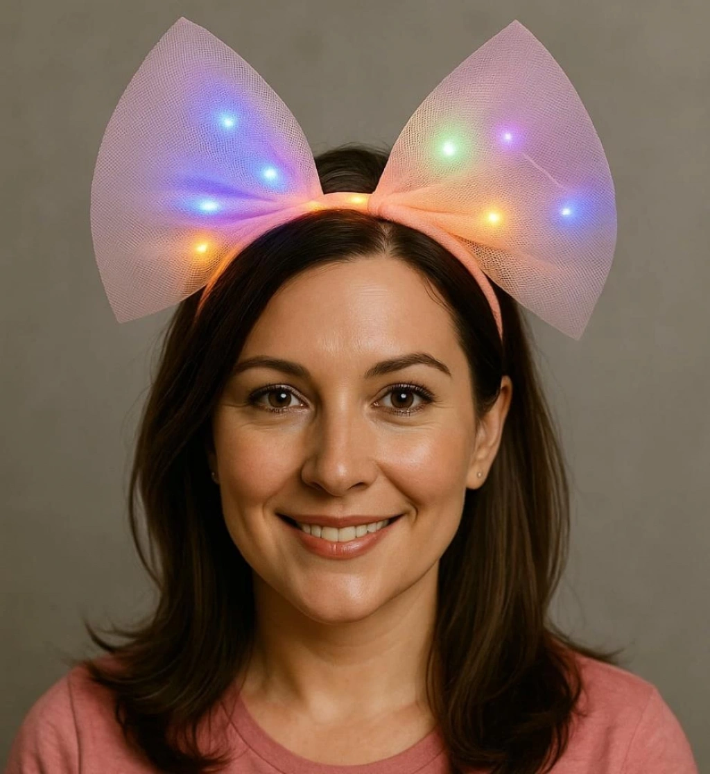 Bu güzel tül parti tacı, her partiye veya özel vesileye renk katmak için mükemmeldir. Tacın pembe fiyonk şekli ve rengarenk LED ışıkları onu göz alıcı bir aksesuar haline getirir. 25x25 cm boyutlarındadır ve çoğu yetişkin ve çocuğa uygundur.