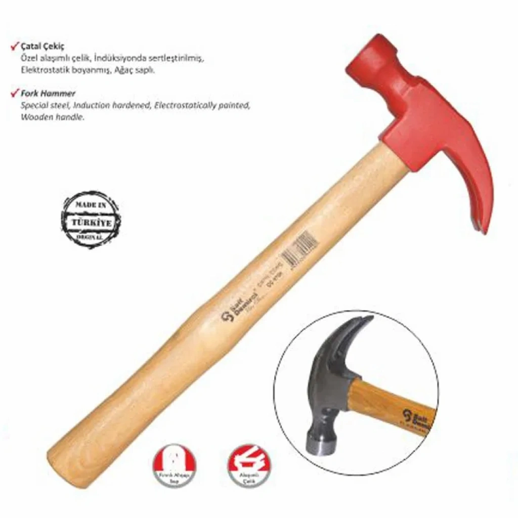 Sait Demirci Boyalı Çatal Çekiç, inşaat, tamirat ve çeşitli el işlerinde sıklıkla kullanılan, dayanıklı ve çok yönlü bir alettir. Özellikle ahşap işleme, metal şekillendirme ve demir doğrama gibi alanlarda yaygın olarak tercih edilir.