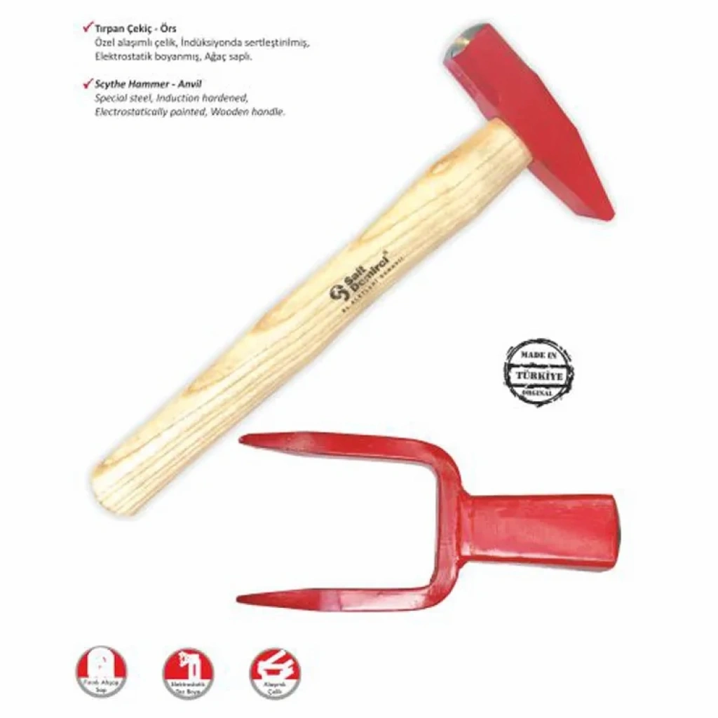 "Sait Demirci Tırpan - Çekiç ve Örs Takımı ile her türlü işin üstesinden gelin! Bahçenizi budayın, çitleri tamir edin veya küçük inşaat işlerinizi yapın. Bu takım, dayanıklılığı ve çok yönlülüğü sayesinde size zaman kazandırır ve işinizi kolaylaştırır. Türk malı olmasıyla da yerli üretimi desteklemiş olursunuz."