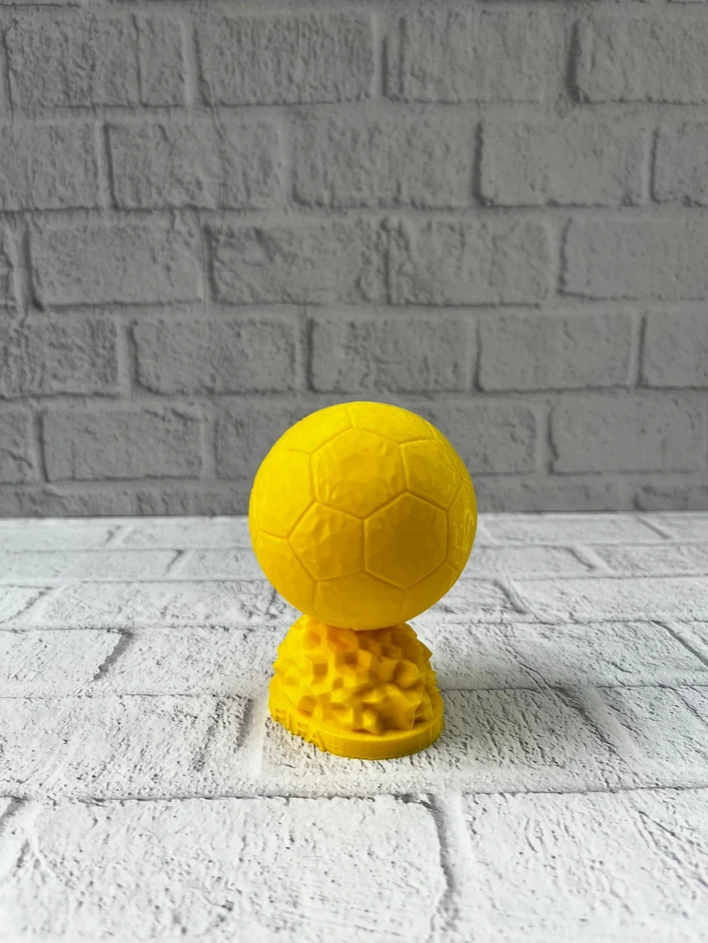 Bu dekoratif Sarı FIFA Topu, spor temalı tasarımları sevenler için hem şık hem de karakterli bir aksesuar olarak tasarlanmıştır. 10 cm boyutuyla kompakt, kullanışlı ve dekoratif açıdan oldukça güçlü bir tamamlayıcıdır. Parlak sarı yüzeyi ortama canlılık katarken alt kısmındaki özel tasarım stand, ürüne modern bir duruş sağlar. Ev ve ofis dekorasyonlarında sportif bir atmosfer oluşturmak isteyen herkes için mükemmel bir dekor ürünüdür.