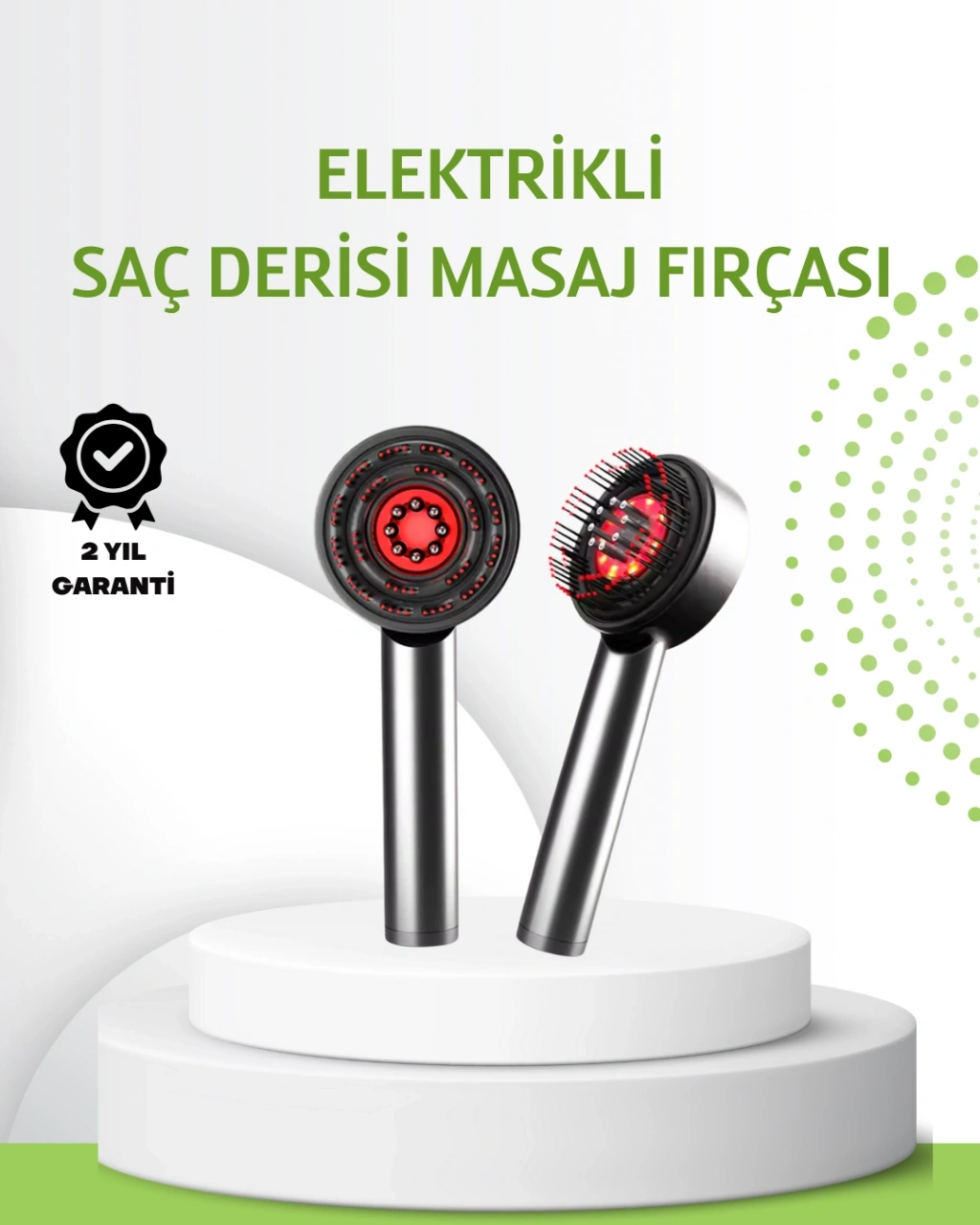 Saç bakımını profesyonel seviyeye taşıyan bu masaj tarağı, kırmızı ışık, mikro akım ve titreşim teknolojilerini bir arada sunar. 630 nm LED ışık saç derisini canlandırır, saç köklerini güçlendirir ve saç dökülmesini azaltmaya yardımcı olur.3 masaj modu sayesinde farklı saç derisi ihtiyaçlarına uyum sağlar. 72 yuvarlak uçlu tarak dişi saçların dolaşmasını önler ve nazik bir masaj sunar. Esansiyel yağ haznesi sayesinde bakım yağları kontrollü şekilde uygulanır.