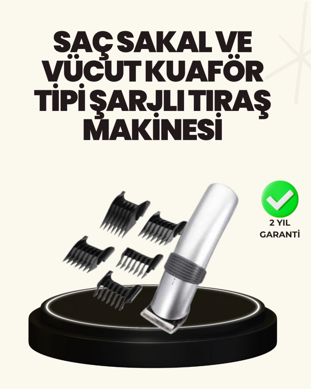 Bu tıraş makinesi, farklı saç ve sakal uzunluklarına göre ayarlanabilen 5 adet kesim tarağıyla birlikte gelir. Her tarak farklı bir kesim boyutuna karşılık gelir ve böylece kullanıcıya tam kontrol imkanı sağlar. Kısa kirli sakaldan uzun saç düzeltmeye kadar geniş bir kullanım alanı sunar.Kesim tarakları kaliteli plastik malzemeden üretilmiş olup kolayca takılıp çıkarılabilir. Taraklar, saç ve sakalı eşit düzeyde keserek doğal bir görünüm oluşturmanıza yardımcı olur. Böylece tıraş sırasında dalgalı veya düzensiz kesimlerin önüne geçilir.Tarakların her biri numaralandırılmıştır. Bu sayede her kullanımdan önce doğru uzunluğu seçmek kolaylaşır. Farklı stil denemek isteyenler için bu özellik büyük bir esneklik sunar. Taraklar hem baş bölgesi hem de yüz bölgesinde rahatlıkla kullanılabilir.Makineyle birlikte gelen güçlü motor ve paslanmaz çelik bıçaklar, tarakların etkili çalışmasını destekler. Kesim sırasında saç veya sakal çekilmez; bu da konforlu bir tıraş deneyimi anlamına gelir. Özellikle sert sakallarda bile başarılı sonuçlar verir.Şarjlı ve kablosuz yapısı sayesinde taraklar sayesinde istenen şekil her yerde kolaylıkla verilebilir. Günlük kullanımda ya da özel günler öncesi kendi stilinizi oluşturmak artık çok daha pratik.Taraklar, temizlik açısından da oldukça pratiktir. Kullanım sonrası yıkanabilir yapıdadır ve kısa sürede hijyenik hale getirilebilir. Bu da bakım sürecini kolaylaştırır ve ürünün hijyenik kalmasını sağlar.Bu çok amaçlı tıraş cihazı, hem kendi saç ve sakal bakımını yapmak isteyen bireyler hem de farklı stilleri denemekten hoşlanan kullanıcılar için mükemmel bir seçenektir.