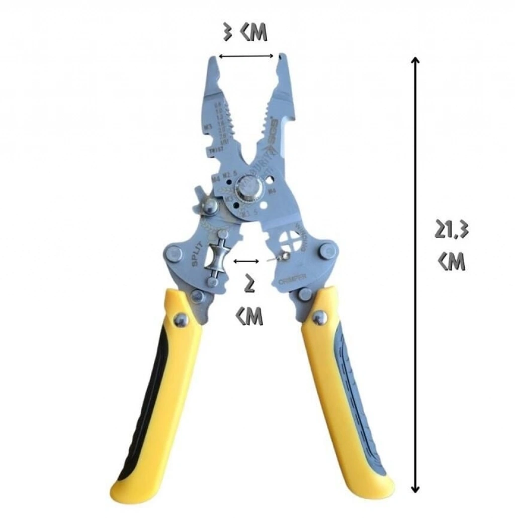 Özellikler Boyut: 160 mm Malzeme: Krom vanadyum çelik Fonksiyonlar: Tel sıyırma, kıvırma ve kesme işlemleri. Uyumluluk: 1.5 mm² - 6 mm² kablolarla çalışır. Kullanım Alanları: Elektrik tesisatı, tamirat, Hobi projeleri ve endüstriyel montaj.