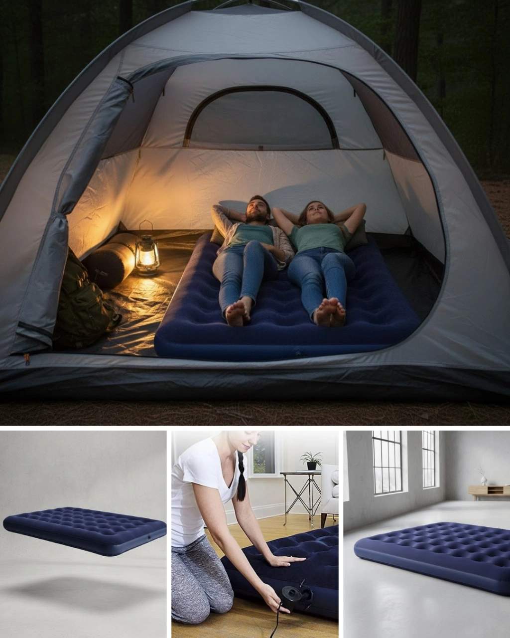 Çok amaçlı kullanım için tasarlanan bu çift kişilik şişme yatak, kamp ve ev içi ihtiyaçlar için ideal bir tercihtir. Dayanıklı vinil gövde, uzun ömürlü kullanım sunarken flokeli yüzey konforu artırır. Sarmal kirişli iç yapı, dengeli ve rahat bir yatış sağlar.Vidalı vana sistemi ile hızlı şişirilip indirilebilir. Az yer kaplayan yapısı sayesinde kolayca saklanır. Konforlu, sağlam ve pratik bir uyku çözümü arayanlar için uygundur.