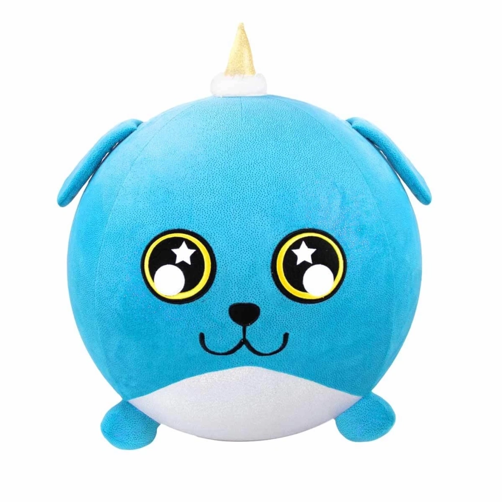 Yumuşak bir peluşü ve komik dev bir topun mükemmel bir şekilde birleştirildiği Şişme Peluş Köpek XXL