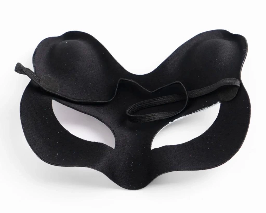 Siyah Renk Üzeri Gümüş Yeşil Simli Süet Kaplama Kedi Maskesi ile Kostüm Partisine Hazır Olun!