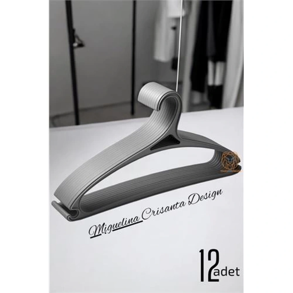 Tasarım Askı Seti 12 ADET Elbise Askısı M.Crisanta GRİ