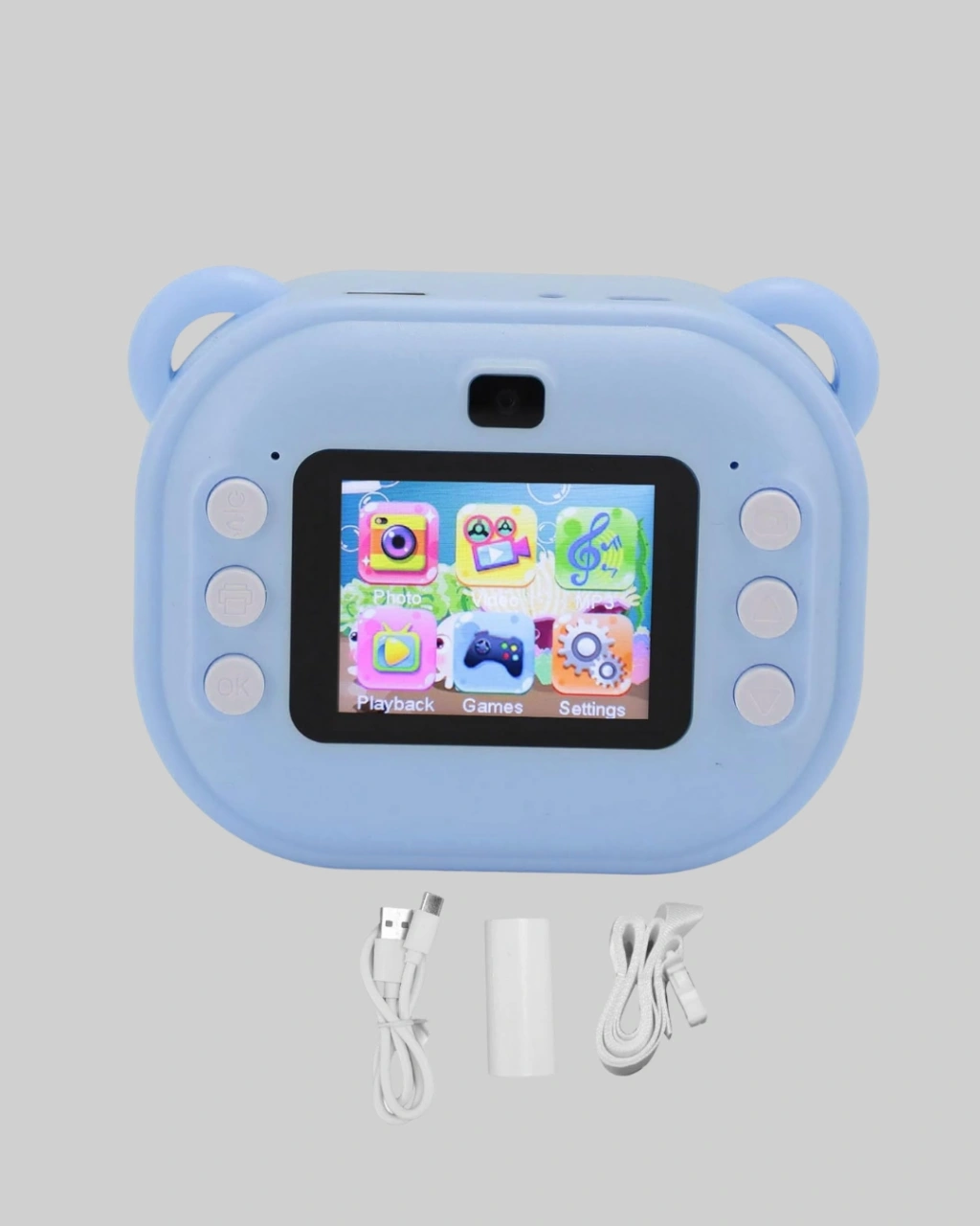 Termal baskı özelliği ile öne çıkan bu mini kamera, çocukların günlük anılarını eğlenceli bir biçimde kayıt altına almalarına olanak tanır. Termal baskı teknolojisi sayesinde çekilen fotoğraflar saniyeler içinde basılabilir ve baskı işlemi için mürekkep veya kartuş gibi ek sarf malzemelerine ihtiyaç duyulmaz. Bu avantaj, çocuklara maliyetsiz bir baskı imkânı sunarken ebeveynler için de büyük kolaylık sağlar.Kamera, çocukların yaratıcılığını geliştiren özelliklerle donatılmıştır. 5 farklı renk filtresi ile çocuklar fotoğraflarını daha eğlenceli hale getirebilir. 18 yaratıcı çerçeve seçeneği ise fotoğraflara kişisel dokunuş katmayı sağlar. Yüksek çözünürlüklü ekranı, çekilen görüntülerin net bir şekilde görüntülenmesine imkan tanır. Ayrıca grayscale ve dot print baskı modları çocuklara farklı fotoğraf tarzları sunar.Eğlence yönüyle de zengin olan bu mini kamera, içerisinde bulunan oyunlarla çocuklara keyifli zaman geçirir. Snake, maze ve brick breaker oyunları, çocukların odaklanmasını geliştirirken eğlenmelerine de yardımcı olur. MP3 oynatma özelliği ise cihazı bir müzik çalara dönüştürür ve çocukların sevdikleri şarkıları dinlemelerini sağlar.Kompakt ve taşınabilir yapısı, kamerayı hem evde hem dışarıda kullanım için ideal kılar. Taşıma askısı sayesinde çocuklar cihazı düşürme riski olmadan rahatça taşıyabilir. Kolay kullanım sunan menüsü ve büyük tuşları küçük yaştaki kullanıcıların bile zorlanmadan öğrenmesini sağlar. Hafıza kartı dahil değildir; ayrıca satın alınması gerekir. Çocuklara hem eğlence hem yaratıcılık sunan bu kamera, ideal bir hediye seçeneğidir.