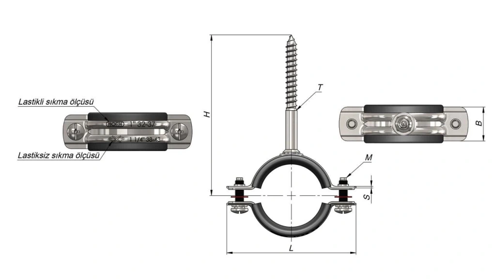 Boruların duvara (yatay / dikey) tavana ve zemine montajında kullanılır.