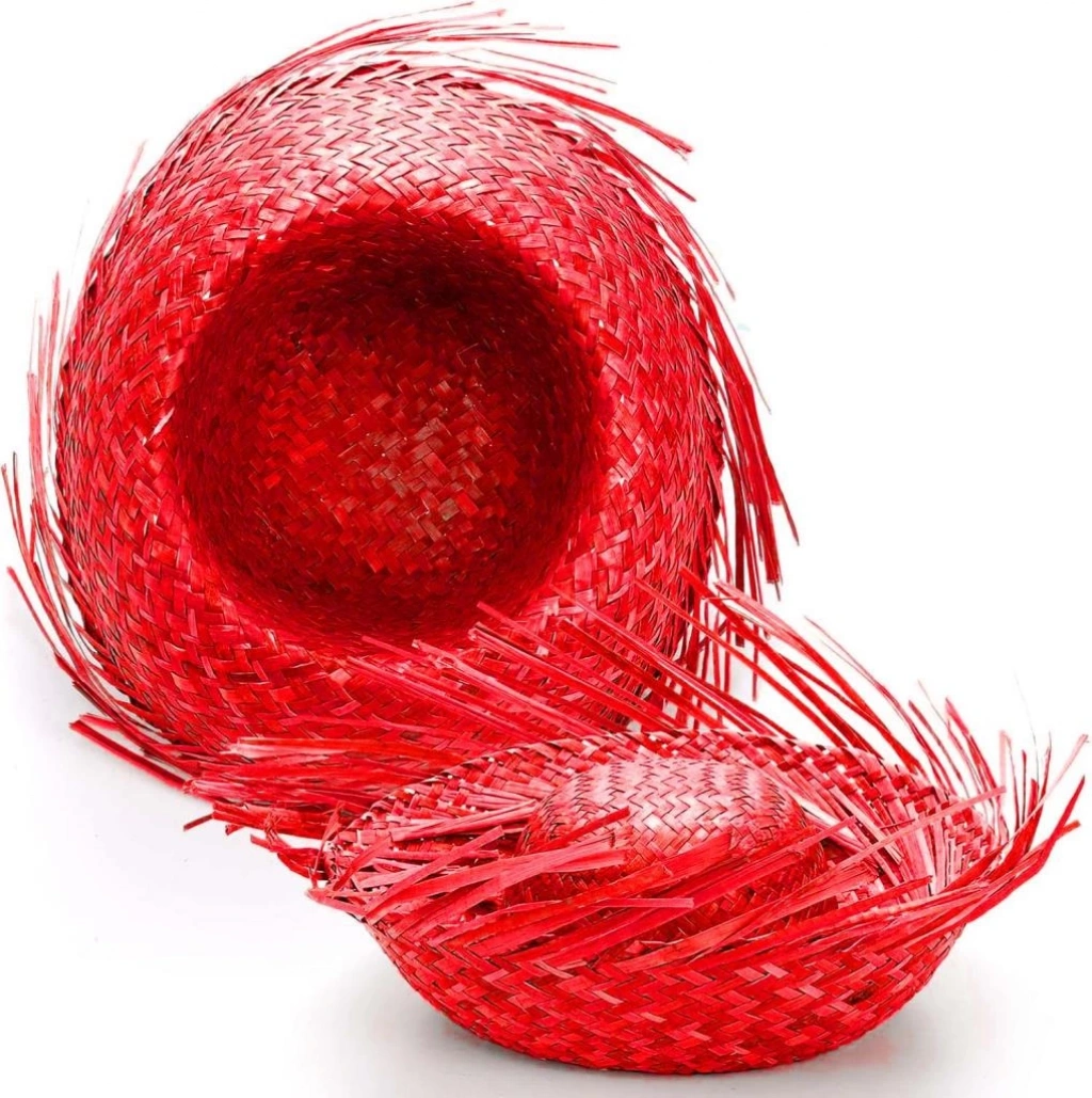 Tropikal Parti Kırmızı Hasır Hawaii Şapkası 13x36 cm