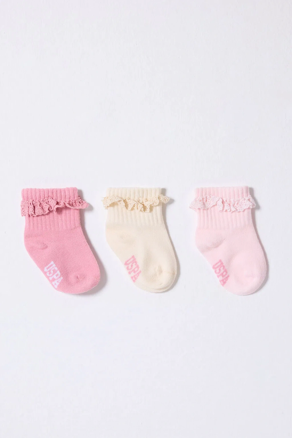 U.S.Polo Kız Bebek Çorap USB2208 Pudra Ekru Somon