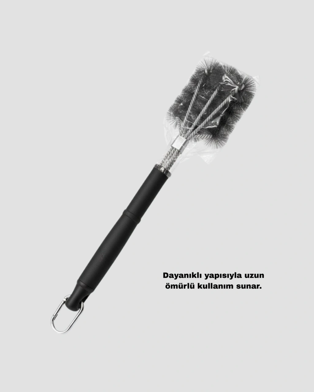 Izgara temizliğini zahmetsiz hale getiren bu mangal temizleme fırçası, paslanmaz çelik telleri sayesinde yüksek dayanıklılık sunar. Yanmış yağ ve yiyecek artıklarını yüzeye zarar vermeden temizler. Güçlü tel yapısı, uzun süreli kullanım için uygundur.Uzun saplı tasarımı sayesinde temizlik sırasında elinizi yakmadan konforlu bir kullanım sağlar. Ev tipi mangallar, barbeküler ve grill yüzeyleri için idealdir. Düzenli kullanımda ızgaranızın ömrünü uzatır ve her kullanımdan sonra temiz bir yüzey elde etmenize yardımcı olur.