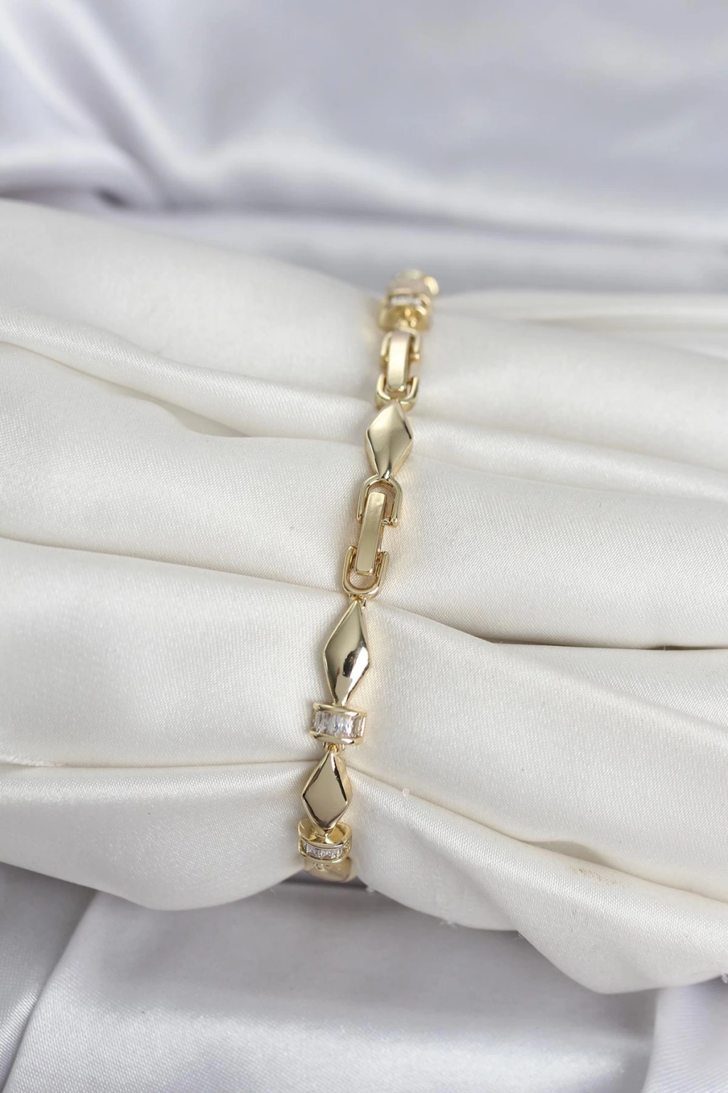 Pirinç Gold Renk Petek Model Zirkon Taşlı Kadın Bileklik