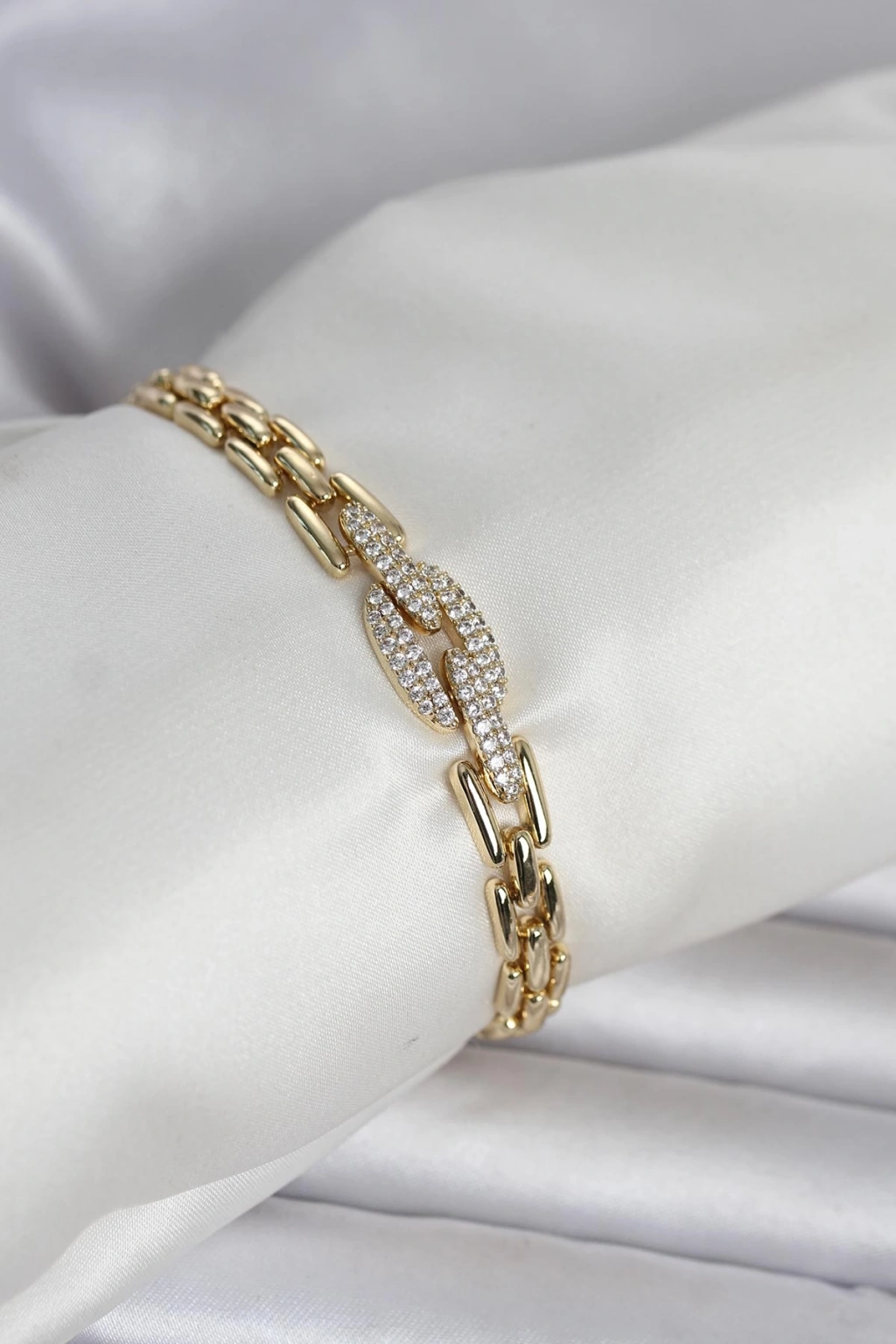 Pirinç Gold Renk Zirkon Taşlı Çavuş Model Kadın Bileklik