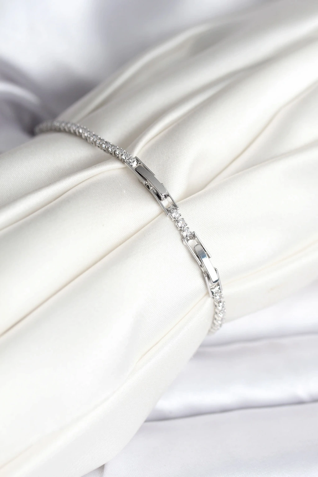 Yıldız Model Zirkon Taşlı Gümüş Renk Pirinç Su Yolu Kadın Bileklik