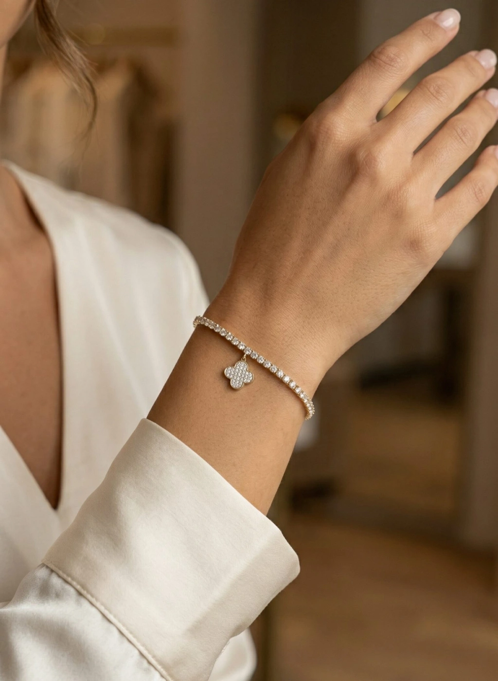 Yonca Model Zirkon Taşlı Gold Renk Asansörlü Su Yolu Bileklik