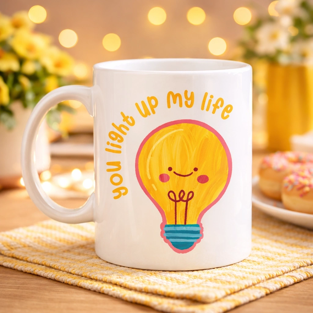 Hayatınıza sıcak bir dokunuş katacak Model 15 – You Light Up My Life Porselen Kupa, hem anlamlı tasarımı hem de günlük kullanıma uygun yapısıyla öne çıkıyor. Üzerindeki gülümseyen ampul figürü ve “You light up my life” yazısı, sevdiklerinize ilham veren ve iç ısıtan bir mesaj sunar.