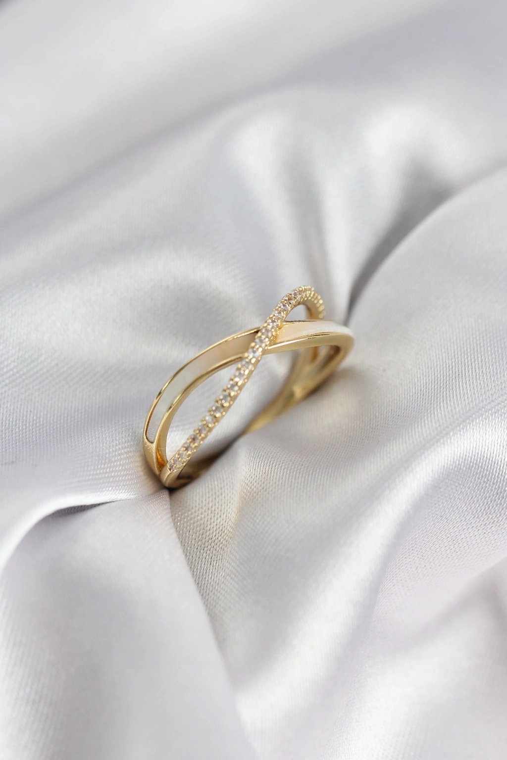 Zirkon Taşlı Sarmal Sedefli Gold Renk Kadın Yüzük